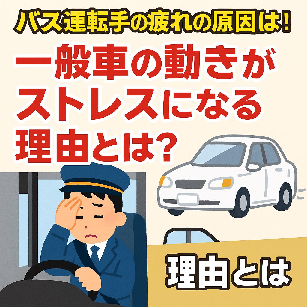 バス運転手の疲労は、長時間労働や不規則な勤務だけでなく、周囲の無理解な運転行動から来る神経的な消耗も大きな要因です。